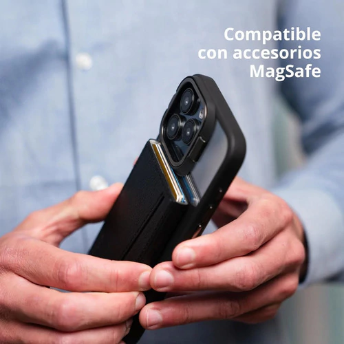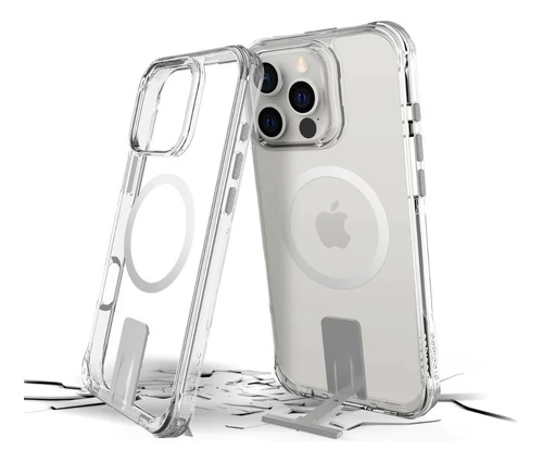 Diseñado con un pie de apoyo colocado discretamente hecho de aleación de aluminio de alta calidad que sostiene firmemente su teléfono en posición vertical. Imanes incorporados discretamente diseñados para carga inalámbrica. Esta funda resistente brinda protección integral con parachoques que absorben los golpes. Agarre firme en todos los sentidos y material de acabado suave con un bisel elevado para ayudar a proteger la lente de la cámara contra rasguños.