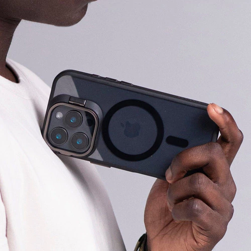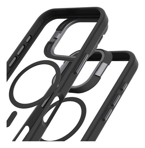 La funda Prodigee Kickit Magneteek Black para iPhone 16 Pro Max presenta un diseño funcional con un soporte integrado que permite ajustar el dispositivo en varios ángulos, ideal para ver contenido o hacer videollamadas con comodidad.